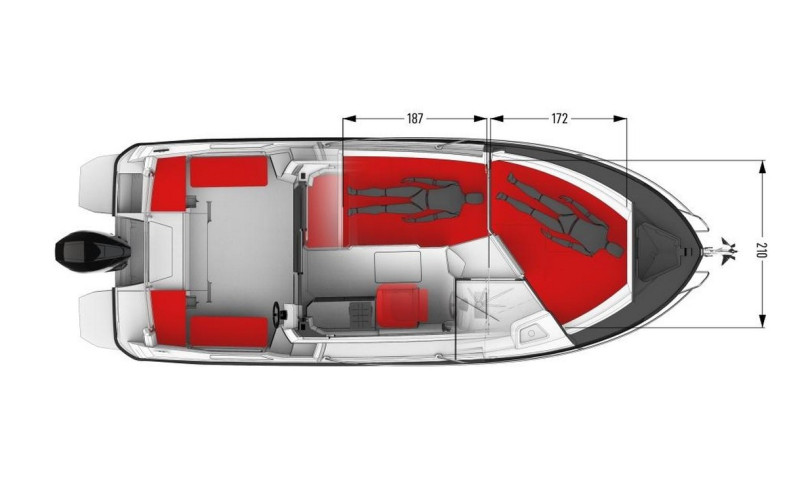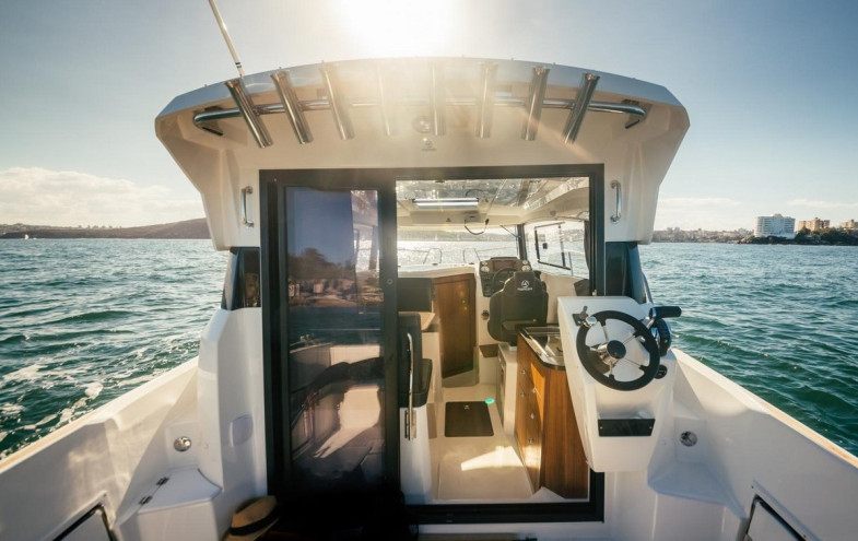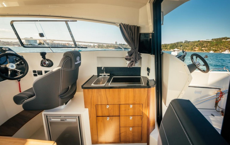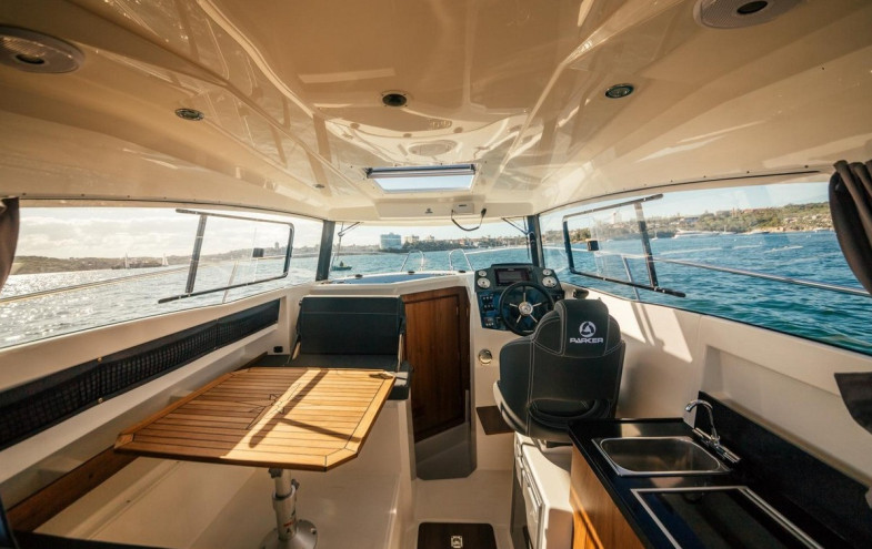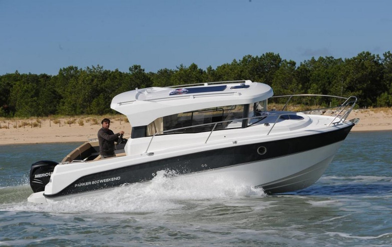 The Parker 800 Weekend is without any doubt a very modern and elegant craft. The Parker 800 Weekend's hull has inherited its origins from the deep V hulls of the Parker ribs which ensure excellent sea handling with a stable and dry ride, whatever the weather conditions. The aft section being flattened offers stability at anchor. This boat can be fitted with both stern drive and outboard motors depending on one’s budget, and required usage. Fitted with a Mercury Verado 200 HP or Mercury Diesel QSD 2.8 220 HP or the Mercruiser MCM 4.3 MPI with Alpha 1 drive the Parker 800 Weekend can reach speeds of 30 knots. The high sides are accompanied by numerous grab handrails which provide excellent safety when on the move. The deck shower is coupled with self-draining deck facilitates for a wash down after a day out fishing. The cabin of the Parker 800 offers a spacious interior (will sleep up to six persons) with a bright, well-ventilated area with panoramic views. The comfort on board is provided by a well-planned galley which houses plenty of storage lockers. There is also a separate cubicle with a sea toilet , hand wash basin and shower .